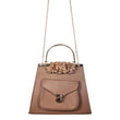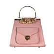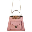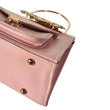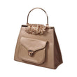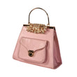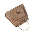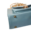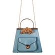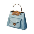Satin Blue Handbag with Jeweled Floral Clasp and Metal Handle